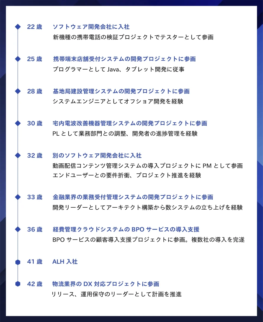 通信・アプリ・業務系システムなど、幅広い分野の案件を経験してきました。