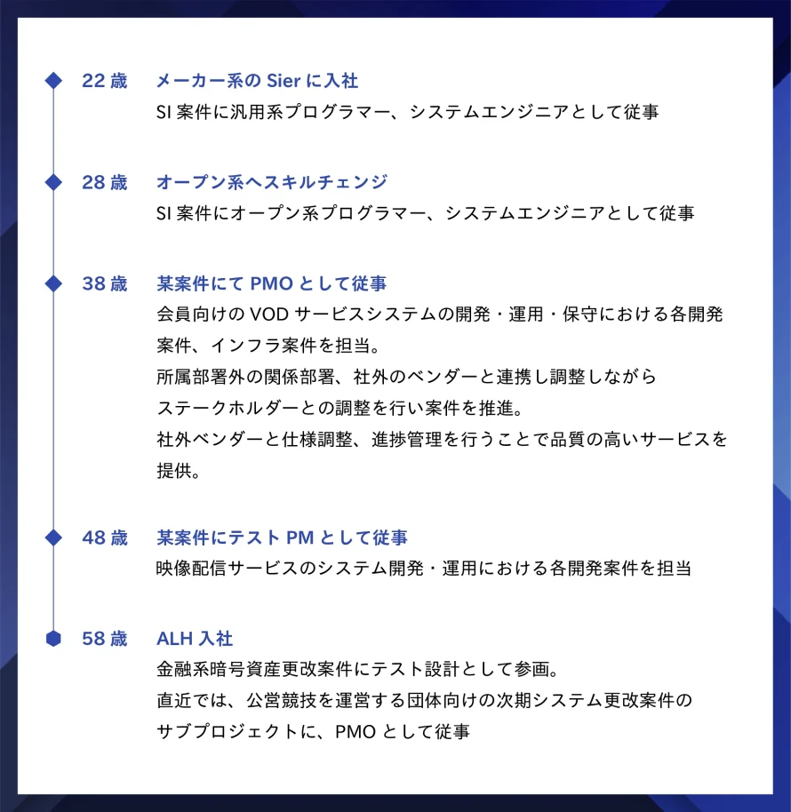 開発エンジニアとして15年、PM/PMOとして12年の経験を積んだのち、9年前に品質保証(QA)へと軸足を移しました。