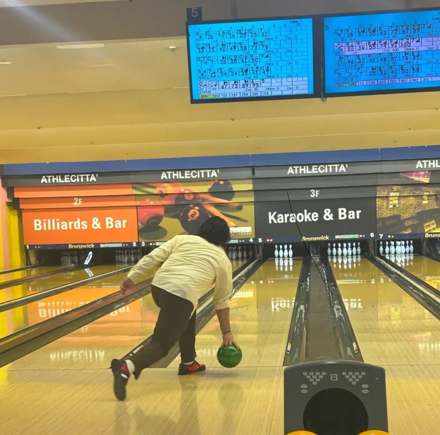 マッチョなのに、ボウリングは不器用でした(笑)