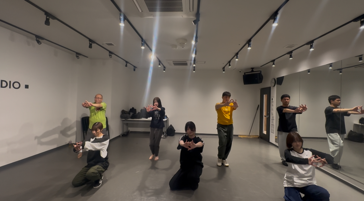 しかし、参加メンバーの振り覚えが驚くほど早く、特徴的なパラパラのような手の動きもすぐにマスターしていました。