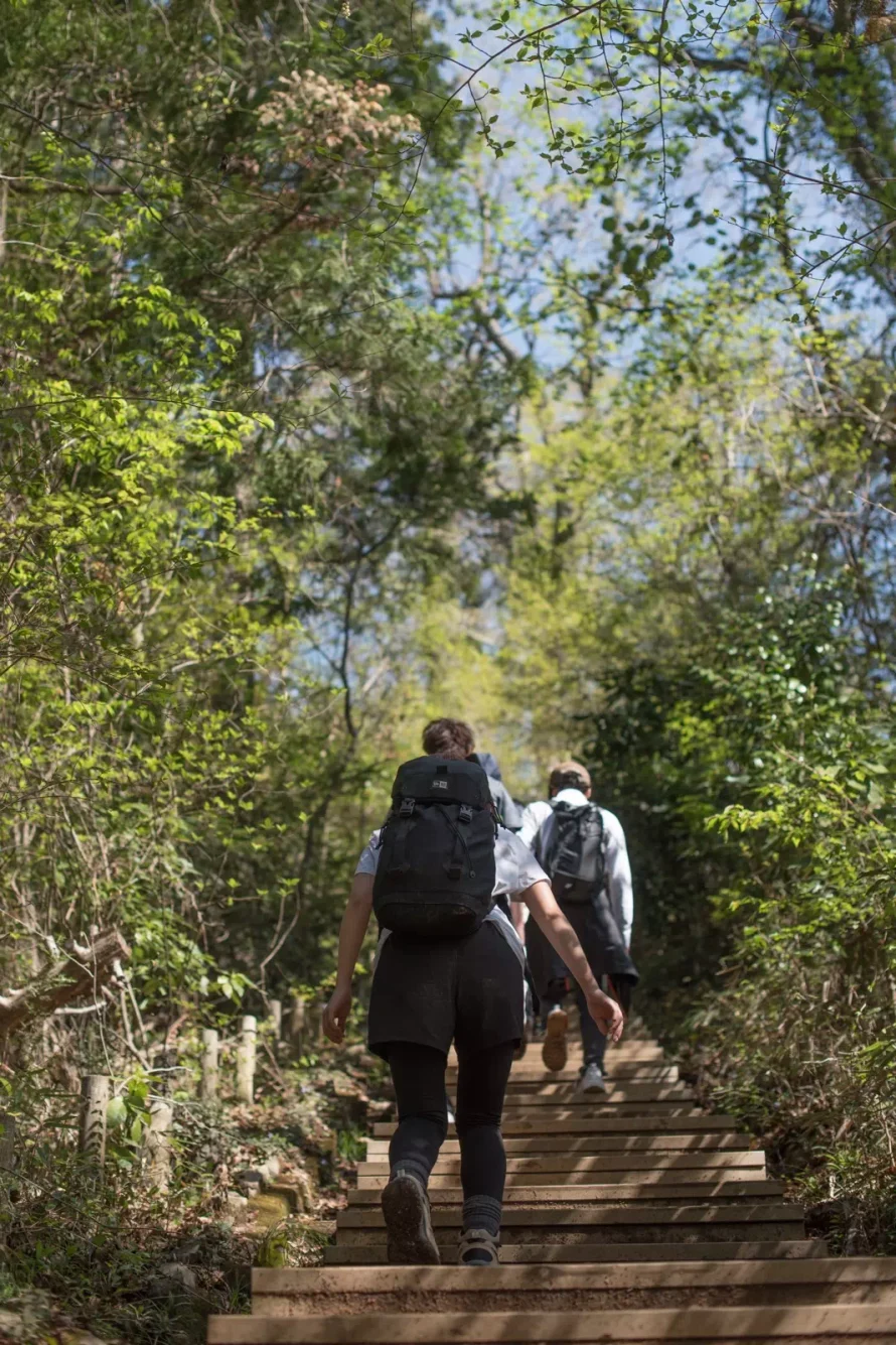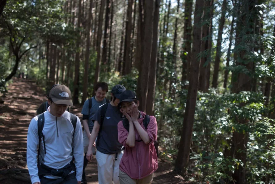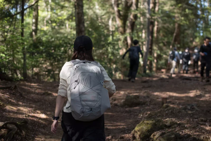 尾根道を歩きながら、仕事の話から趣味の話まで、普段のオフィスではなかなかできない会話が弾みます。木漏れ日の中を歩くのは、本当に気持ちがいいですね!