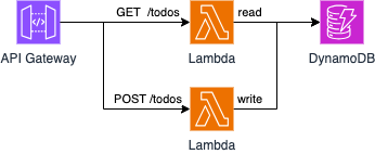 このアーキテクチャ図はLambdaを利用したサーバーレスアーキテクチャで、ToDoアプリのバックエンドシステムとしてAPIを提供する構成です。